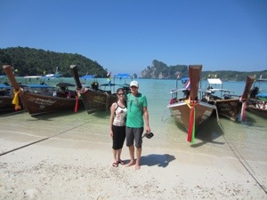 In planning our trip, we decided the first thing we wanted to do was have some R&R time on the beaches of southern Thailand. Having heard that Phuket (where our flight landed) was really developed and overpriced, we got out of there as soon as we could and headed to Ko Phi Phi (pronounced pee pee) on the morning ferry.