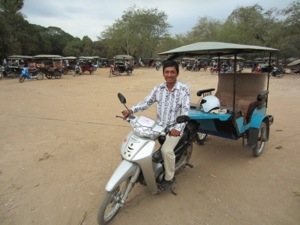 We hired a tuk tuk driver for our trip to the Angkor Temples, which is a popular thing to do. They drive you there and between sites, waiting for you in between. When our driver dropped us off at Angkor Wat, it was before sunrise and pitch dark. Two hours later, when we were done exploring at that first stop, we went to find him and found that where he had dropped us off early that morning was now a sea of tuk tuks, which we all looking the same. Thankfully, he remembered us, and came driving toward us as we were wandering around looking for him.