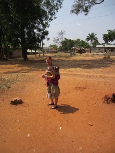 In Yagbaland, women carry babies on their back – secured in place by just two pieces of fabric. Once piece wraps around and the other piece wraps below to support the weight. One of the nursing students let me back her baby. The grandma did the wrapping. Once the baby was wrapped, they told me to start walking. I was scared the baby would fall out, and found myself doing this awkward and slow, stiff walk. It was pretty funny. But, truth be told, I can see why they back the babies here. It’s actually a very comfortable way to carry a baby and it leaves both your hands free to do things. Sadly, there are a lot of single moms here, so being able to work with a baby in tow is often a necessity.