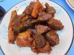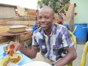 One of the most memorable cultural experiences we’ve had here (although I wouldn’t want to repeat it), is the night our housemate Fred took us out to dinner in town. Fred is the Nigerian Engineer overseeing the building of the new OPD. We share a house with him and Chris from Toronto. Fred doesn’t eat meals with us, he goes into town for his food. He invited us to come with him one night. We went to a little restaurant where we had what they would consider one of the best meals here – cassava with soup and a plate of beef. When the plate of beef arrived we didn’t even recognize it as beef. We had to ask Fred what it was. That’s because the plate had one small piece of muscle and the rest was all organs – small intestine, large intestine, lung, liver, etc. Having meat is a rarity here and they don’t let any part of the animal go to waste.