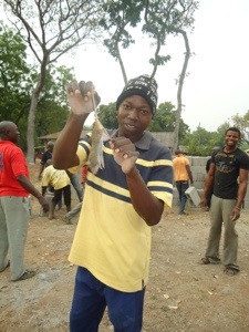 They also don’t let any animal go to waste. Case in point….during the “block party” when we were moving cement blocks for the OPD, a rat came running out of the stack of blocks and all the Nigerians started chasing it around, trying to stomp it with their foot. Less than a minute later, one guy had it under his foot. We learned later that whoever catches it gets to eat it for lunch; which is a special treat for them since they don’t get to eat meat much.