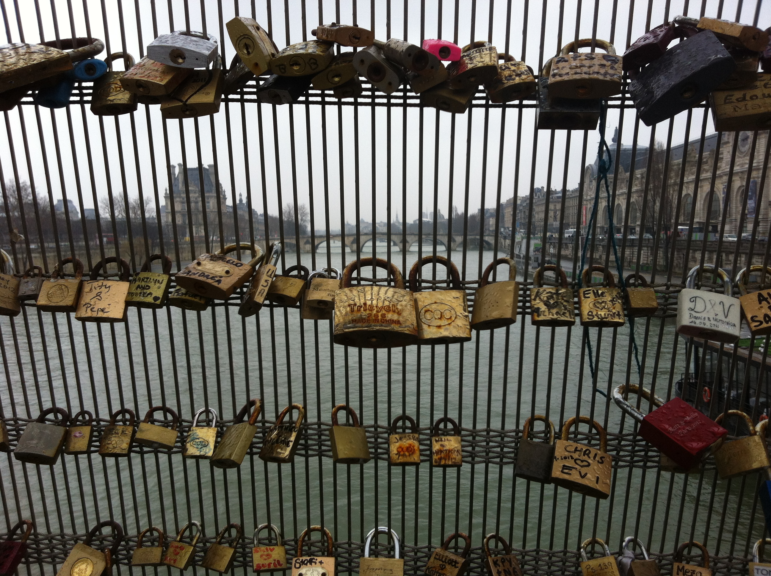LOVE LOCKS: Padlocks attached to a bridge by couples that throw the key into the Seine River as a symbol of eternal love.