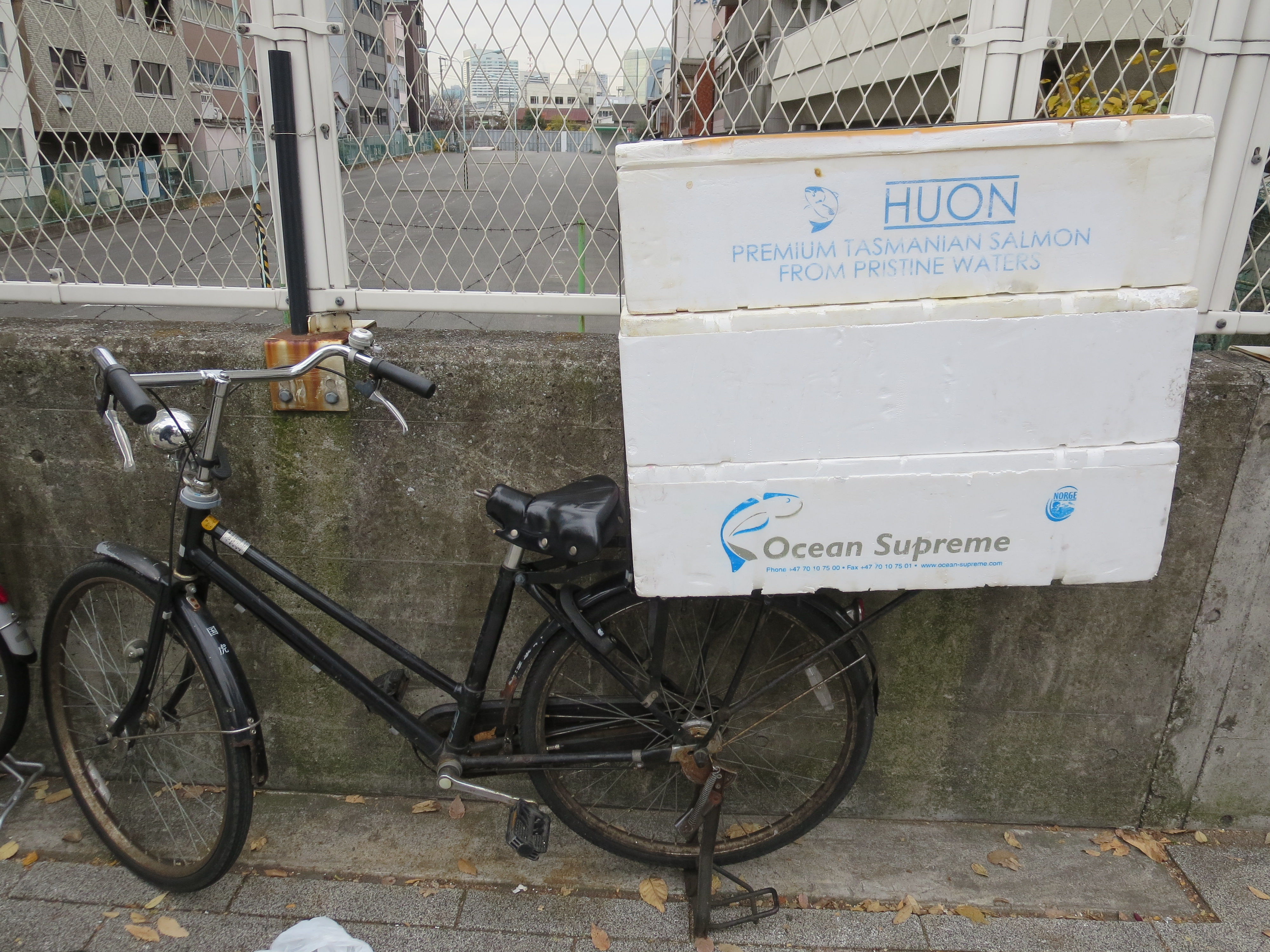 The next morning, before leaving Tokyo, we decided to check out the Tsukiji Fish Market. It’s the biggest seafood market in the world. Once we saw bikes with fish coolers, we knew we must be getting close to it.