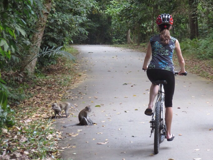 Although the island of Pulau Ubin is part of Singapore, we had heard that it was nothing like Singapore. We definitely found that to be true. When we arrived on the island, we had only three options for lunch: a small seafood restaurant, a small Chinese restaurant, or get something from the island’s only grocery store. Both restaurants were packed, and we did not have time to wait, so we headed to the grocery store. It turned out that the grocery store had just a handful of shelves and they were mostly full of processed food. So, our lunch ended up being a couple Cokes along with chips & peanuts from the store. Super healthy. At least we would spend the next four hours on bicycles. A real meal would have to wait until we were back in the city that night.