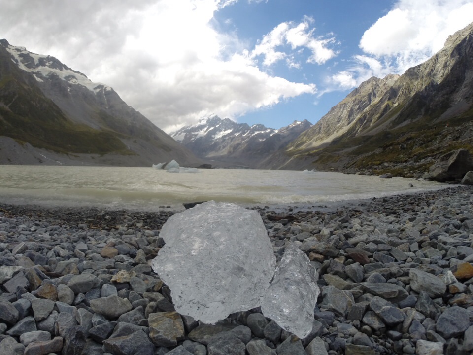 at hooker glacier lake