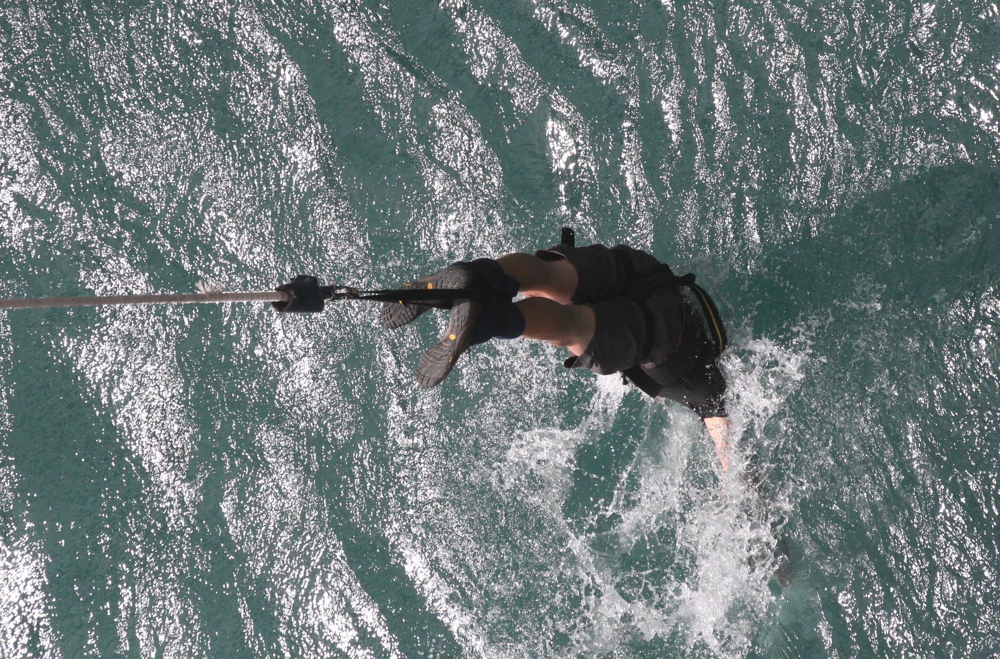 It’s a 43-meter (140 ft) bungy off the Kawarau Bridge. You get to choose whether you want to bob above the water, touch it, or get dunked. Jay chose to get dunked!
