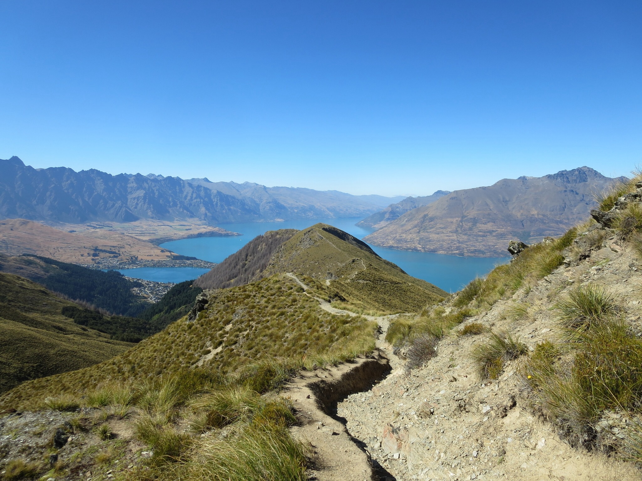 From the top of the gondola are stunning views of Lake Wakatipu. The next section of the track, to the saddle, is on a gentler slope. Along the way, you can see the Ben Lomond summit get closer and closer.