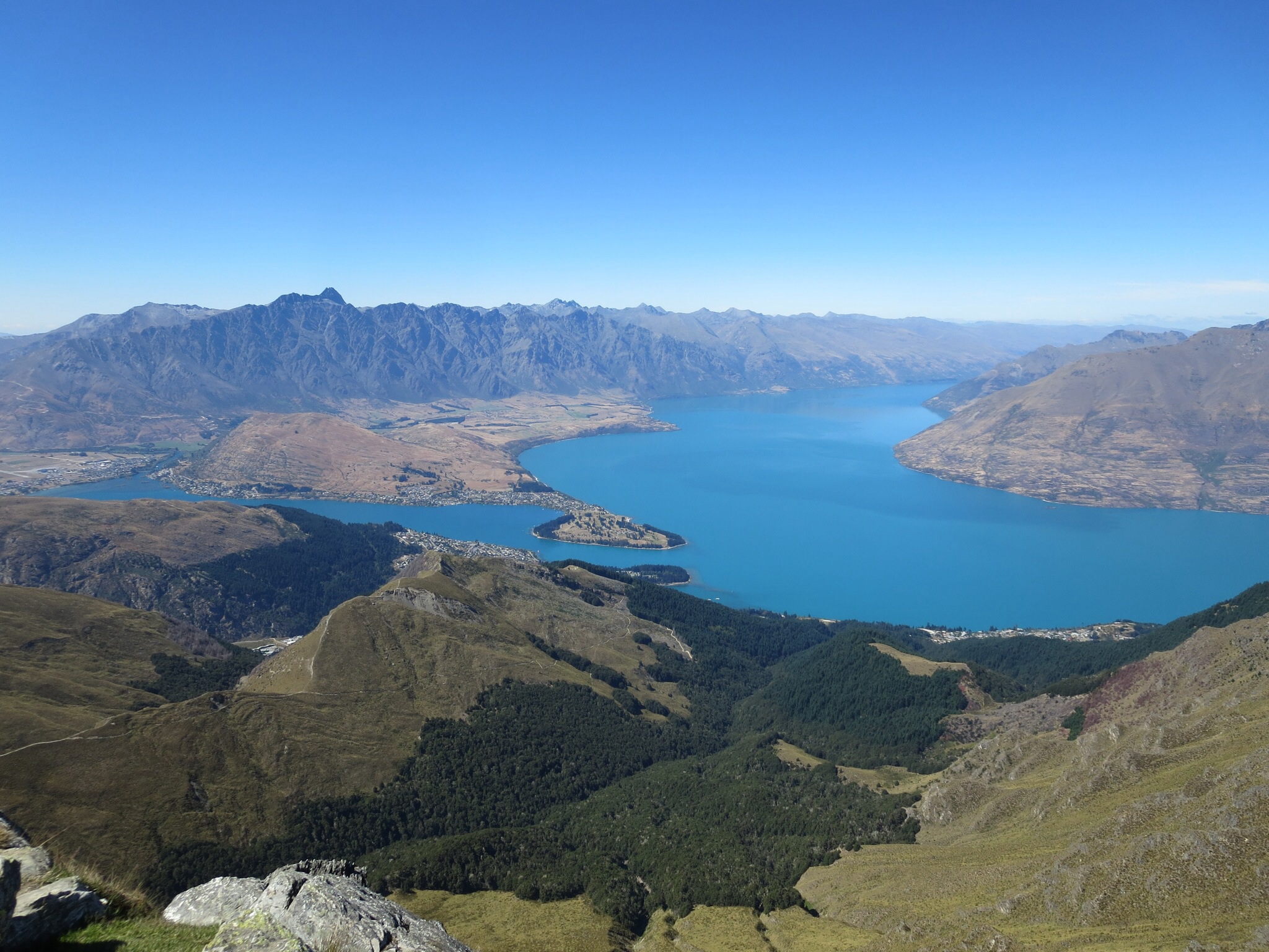 Once at the top, there are spectacular 360-degree views of Lake Wakatipu and the surrounding mountains. We were fortunate to have perfectly clear, sunny skies. From the summit, we were even able to see Mount Earnslaw and Mount Aspiring in the distance. The views were absolutely stunning.