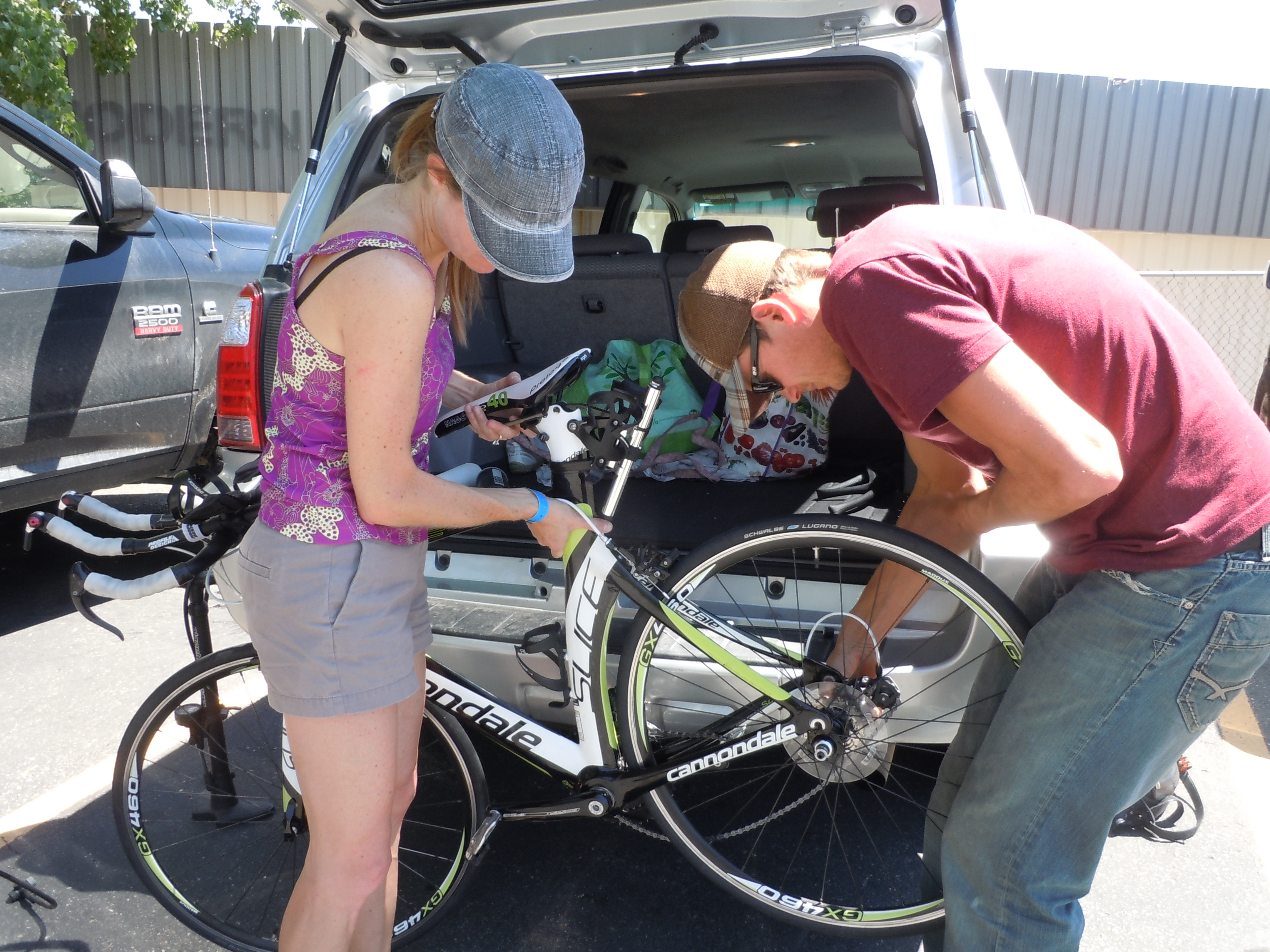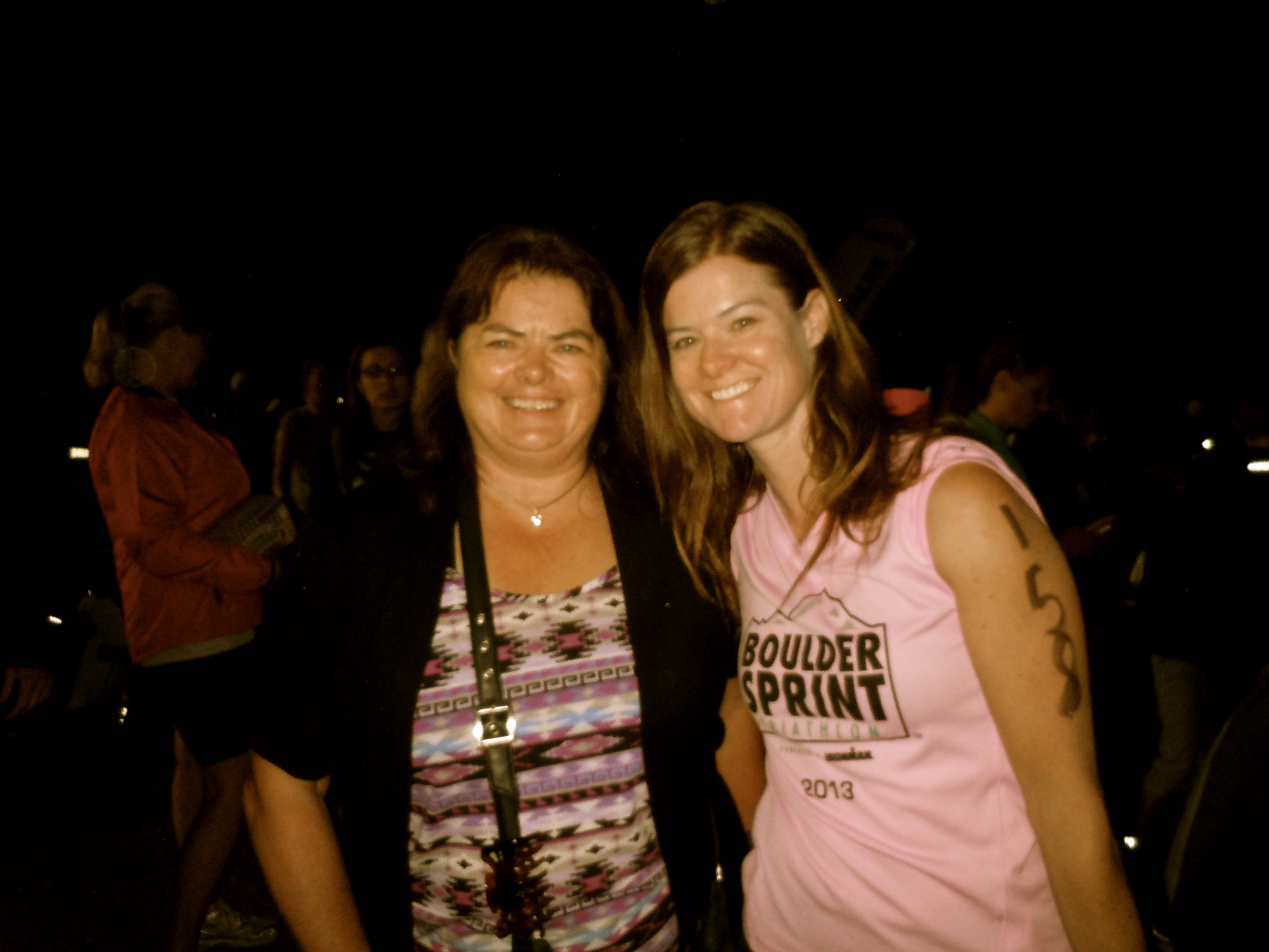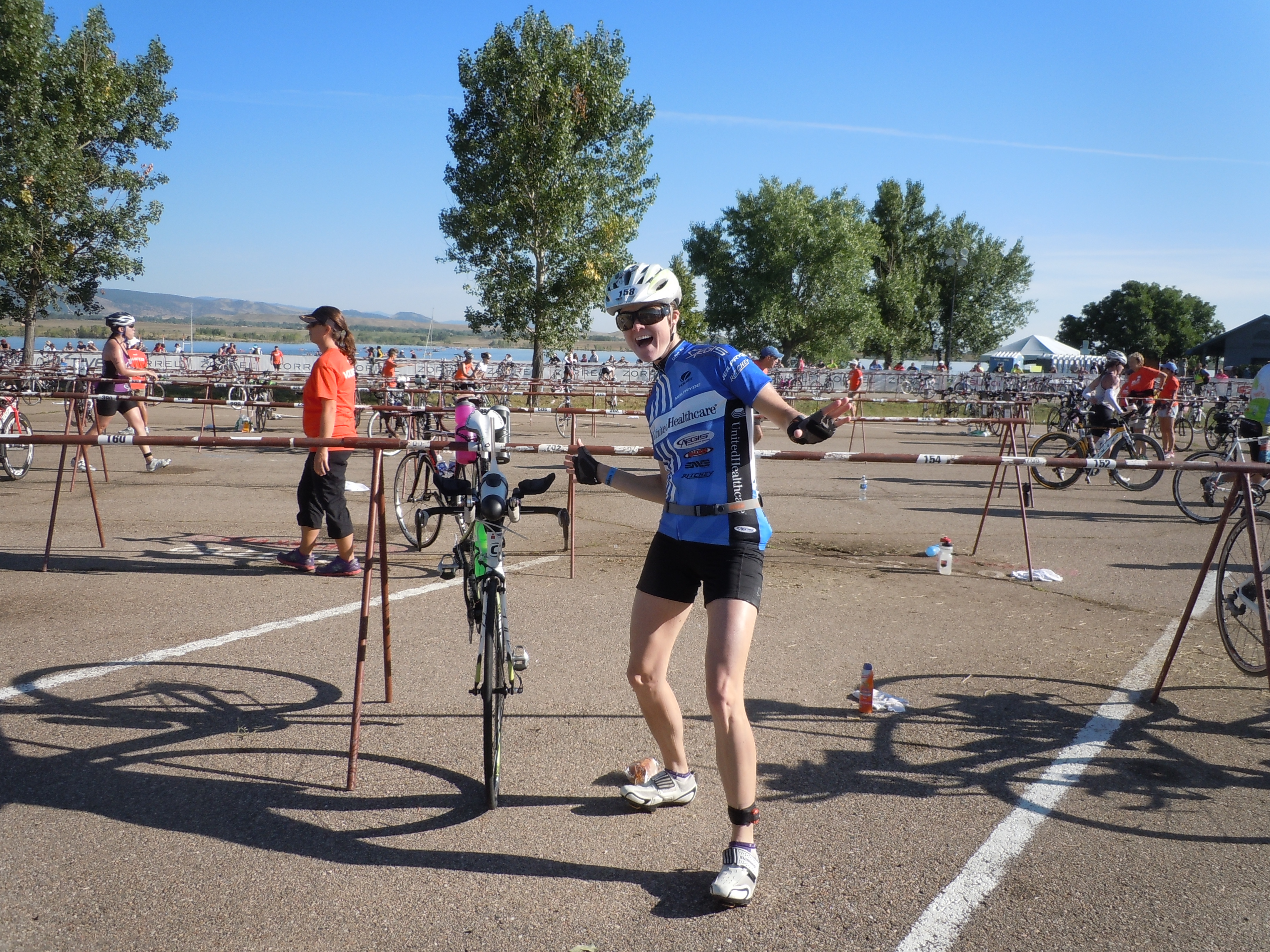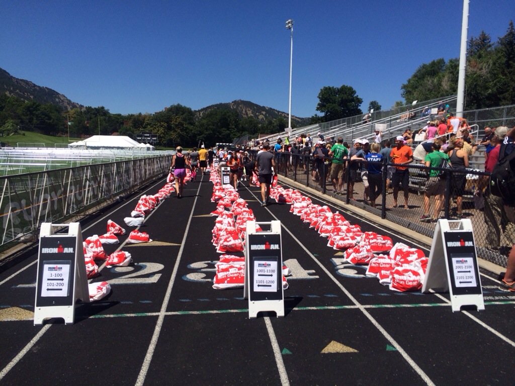 The last thing I did was check on my bike and as I was putting air into my back tire, I broke the tube stem. I’d never had this happen before. I called Jay and he offered to meet me near the Boulder Reservoir to make sure my bike was in order before I had to drop it off. Mom and I loaded up the car with all my stuff. We headed to Boulder High School to drop off my run gear bag off at T2.