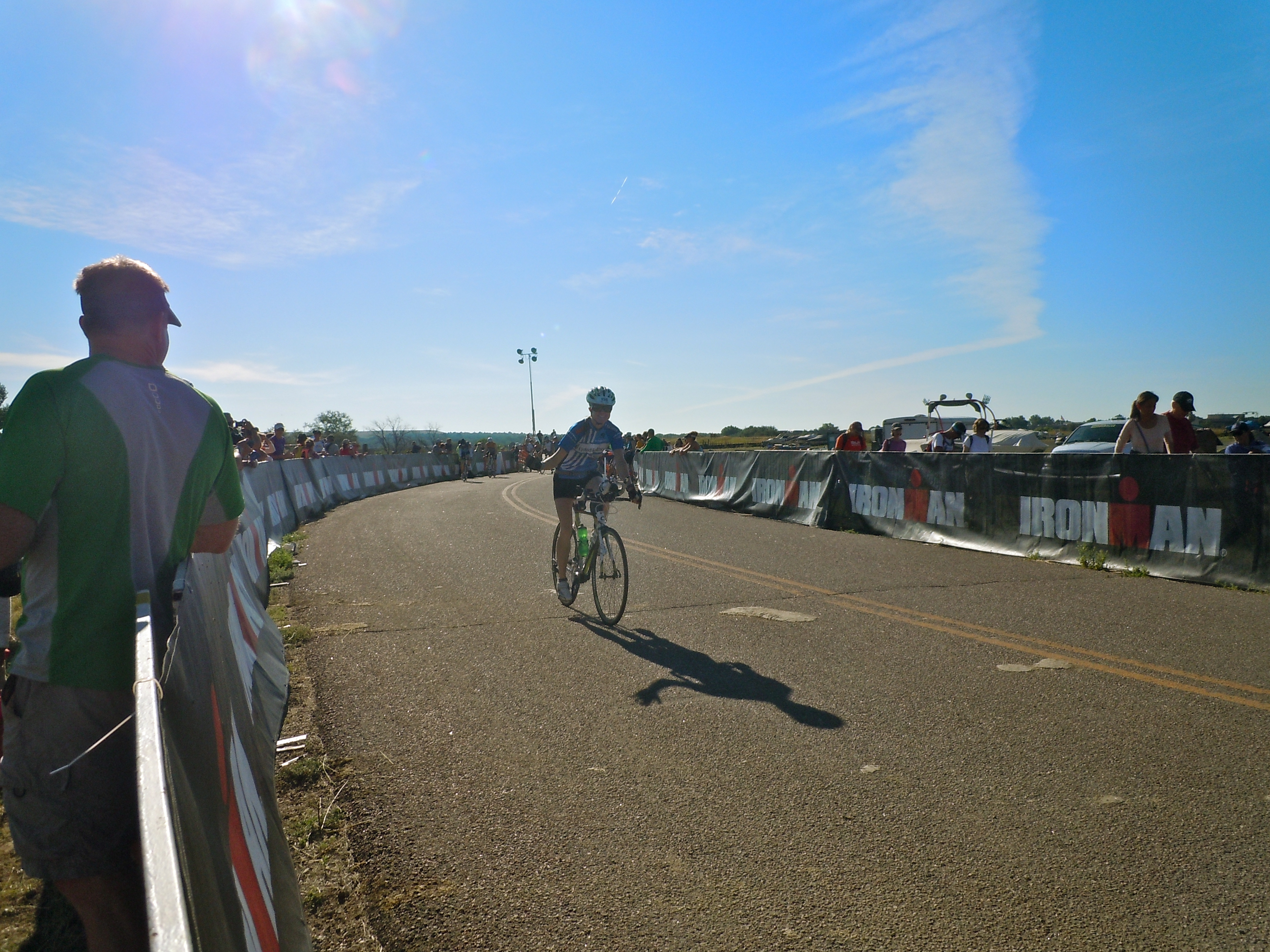 As I left the reservoir, spectators were cheering all along the way. I tried to soak it all in, knowing 112 miles of biking awaited me and there would be long stretches with no spectators in sight. My plan was to be conservative on the bike. The plan was to get off the bike feeling like I could have done more – saving my legs for the marathon. I settled into a comfortable 15-16 mph pace. I felt good. It took focus to continue to hold myself back. Jay watched me at a couple spots along 36 and took some pictures. It was good to see him.