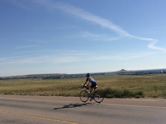 We had to run our bikes up a hill before reaching the mount line, which gave my mom time to get to the road and see me off.