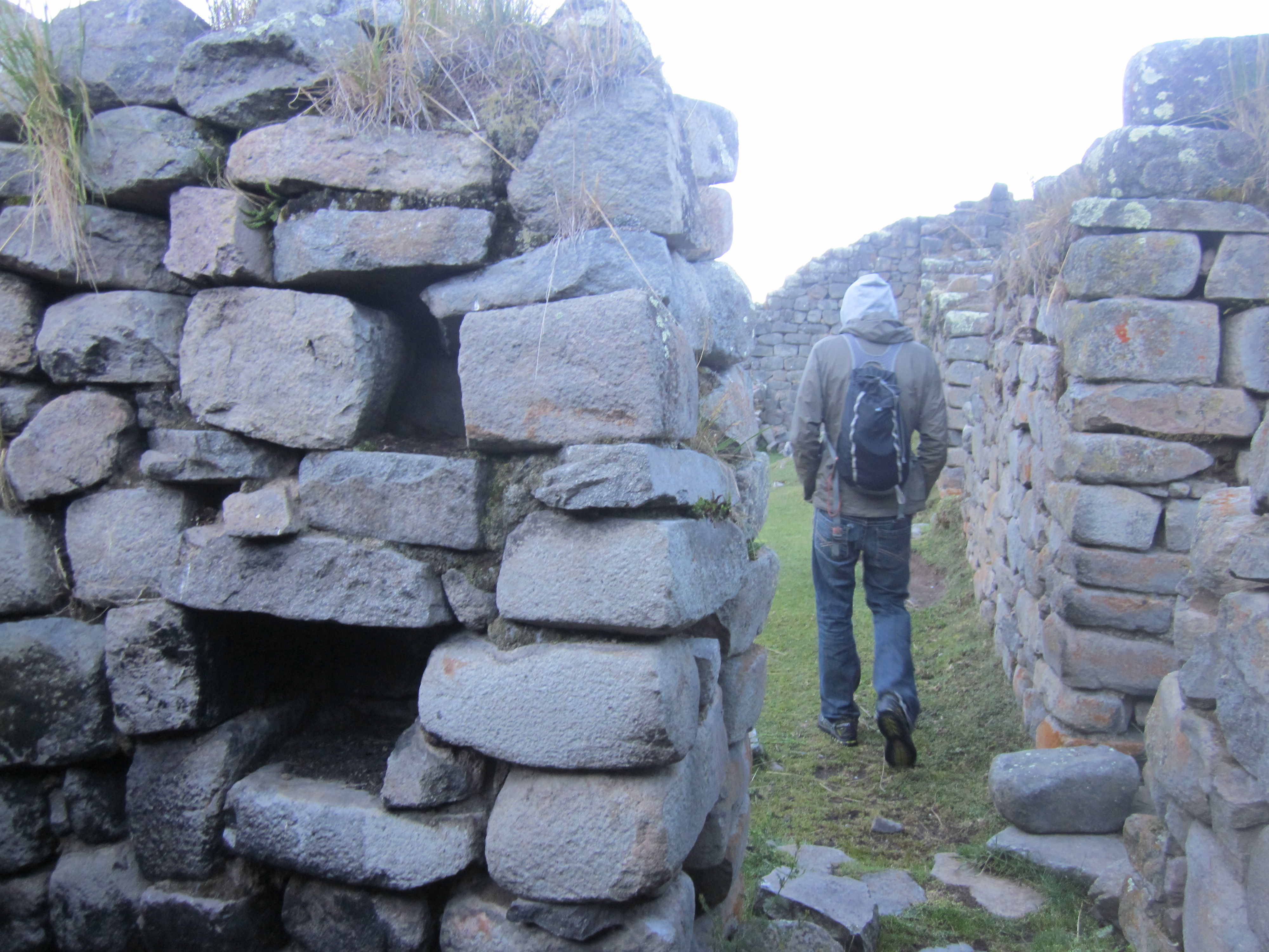 We walked on the Inca Trail and reached a large structure at Paredones. Segundo explained that it was used as a place to stay by runners, who would deliver messages across the Incan Empire in a relay style…with a message attached to their wrist and passed along to the next runner.