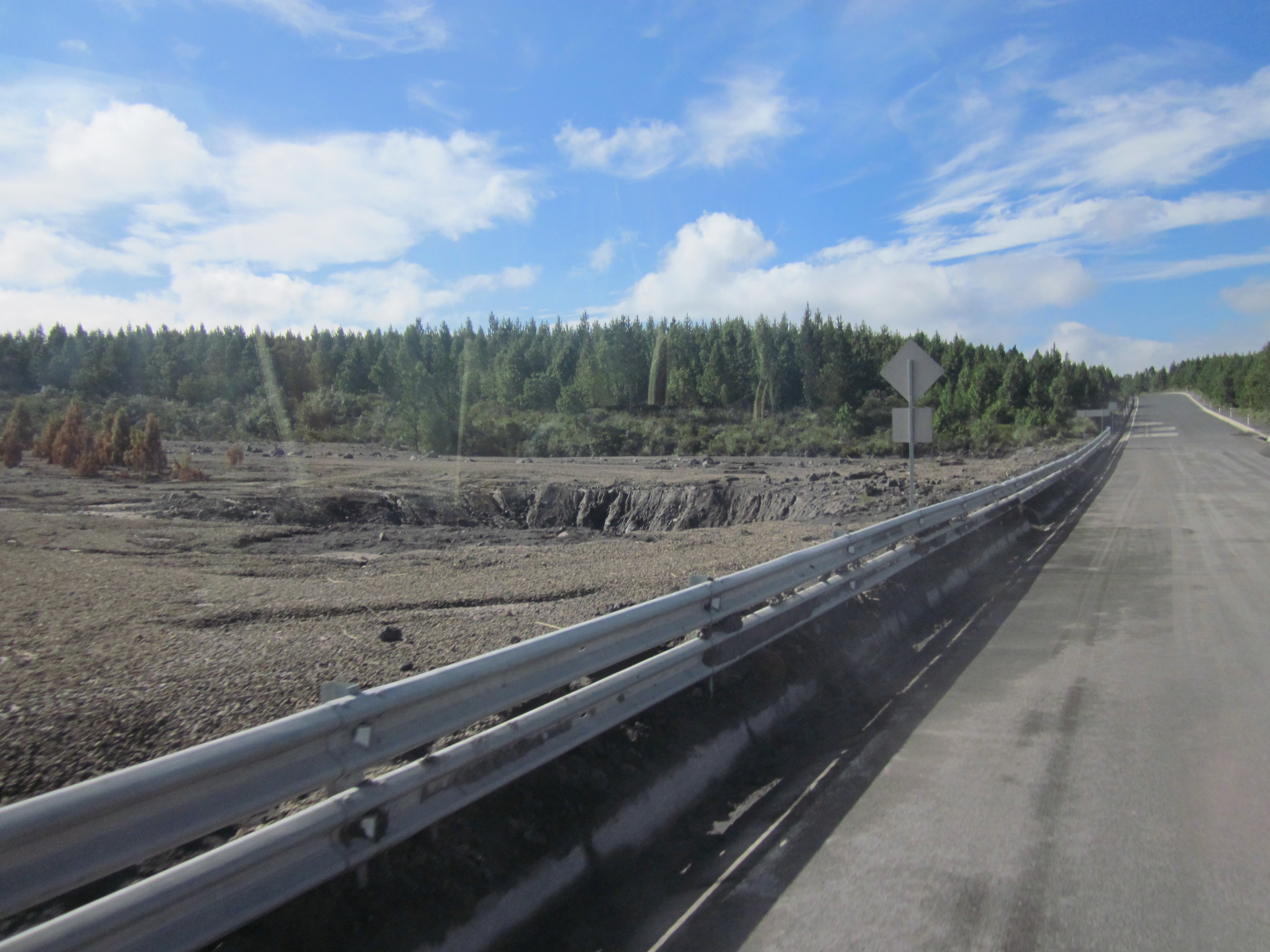 Cotopaxi’s summit sits at over 19,000 feet elevation – wow! Which explains why there is a glacier on top year-round, even though it’s located near the equator. When Cotopaxi got active in August, a huge chunk of the glacier melted and slid down through the park. You can see the aftermath in this photo…