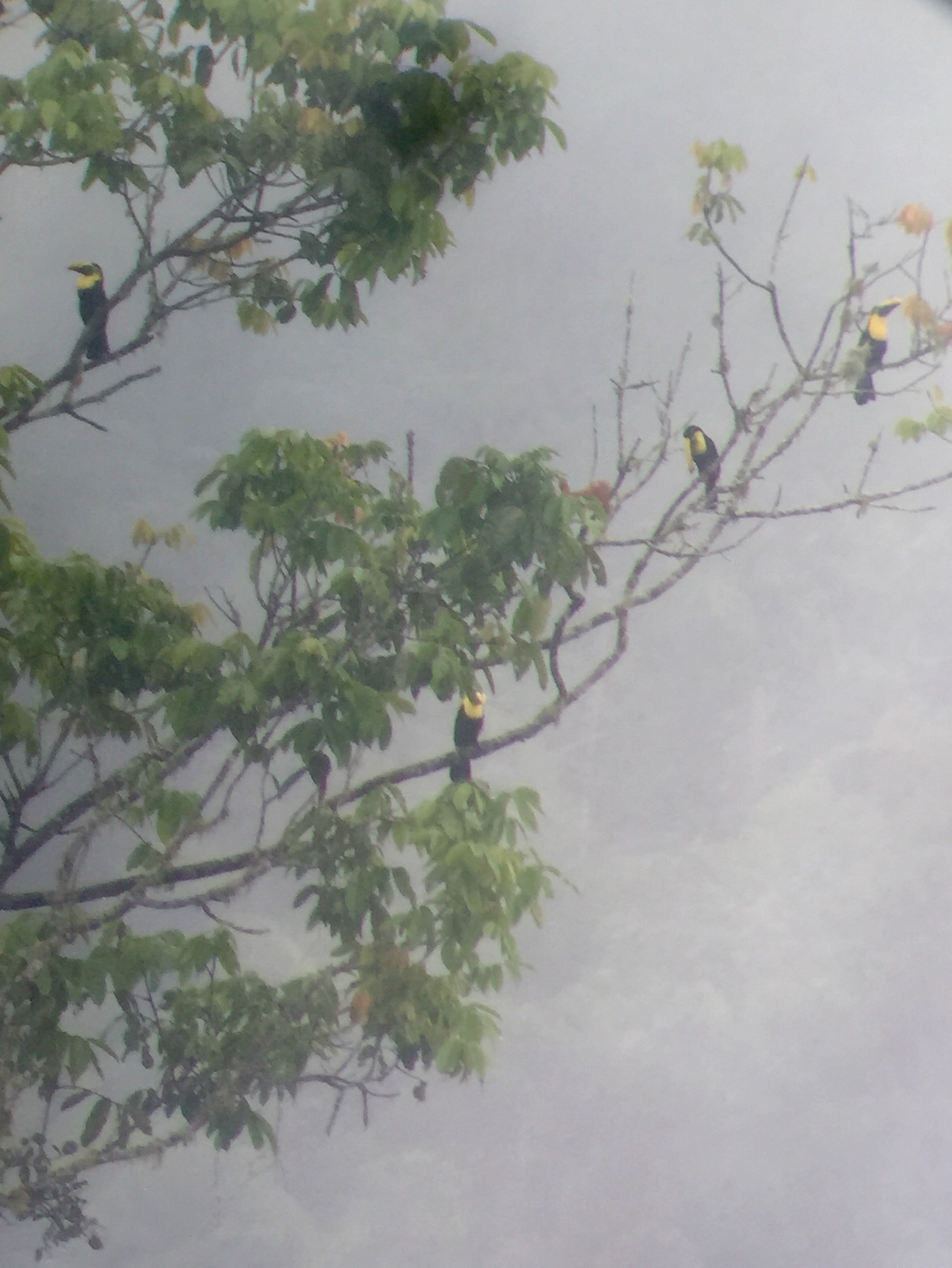 The next morning, we got up early to go bird-watching. It wasn’t something we thought we would do, but Mindo is known for being one of the best places in the world for bird-watching, so we decided to check it out. When we woke up that morning, it was pouring down rain. We worried that the birds would be in hiding. Our guide told us that we would still go, and that the rain should stop soon. Well, the rain never did stop, but we did manage to see a number of different birds. For me, the most exciting part was seeing two different types of toucans. And, not just one at a time, but groups of them together. They were beautiful to watch.