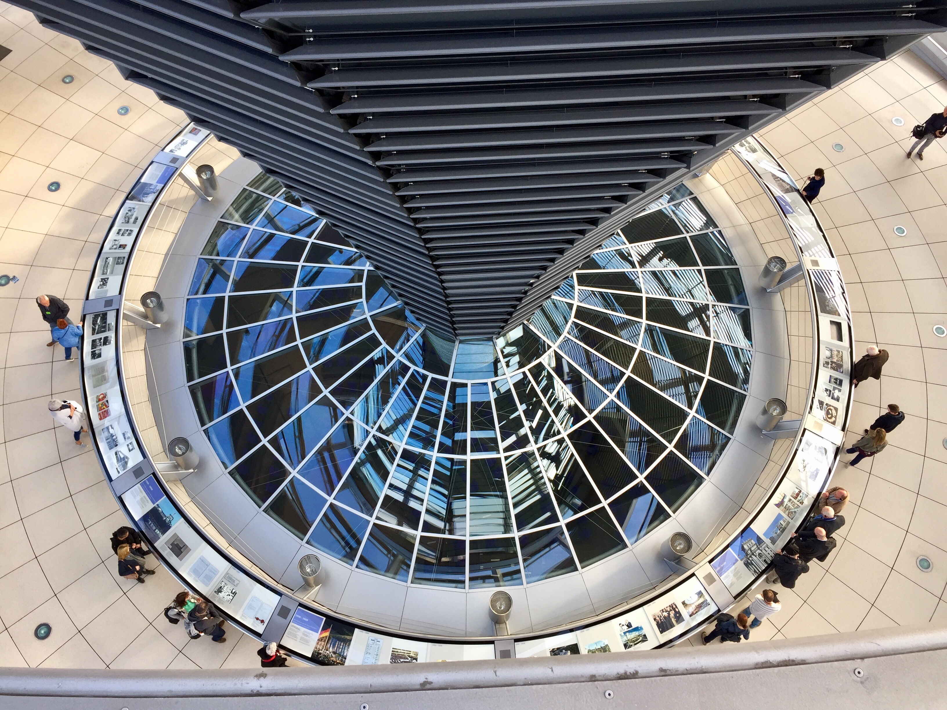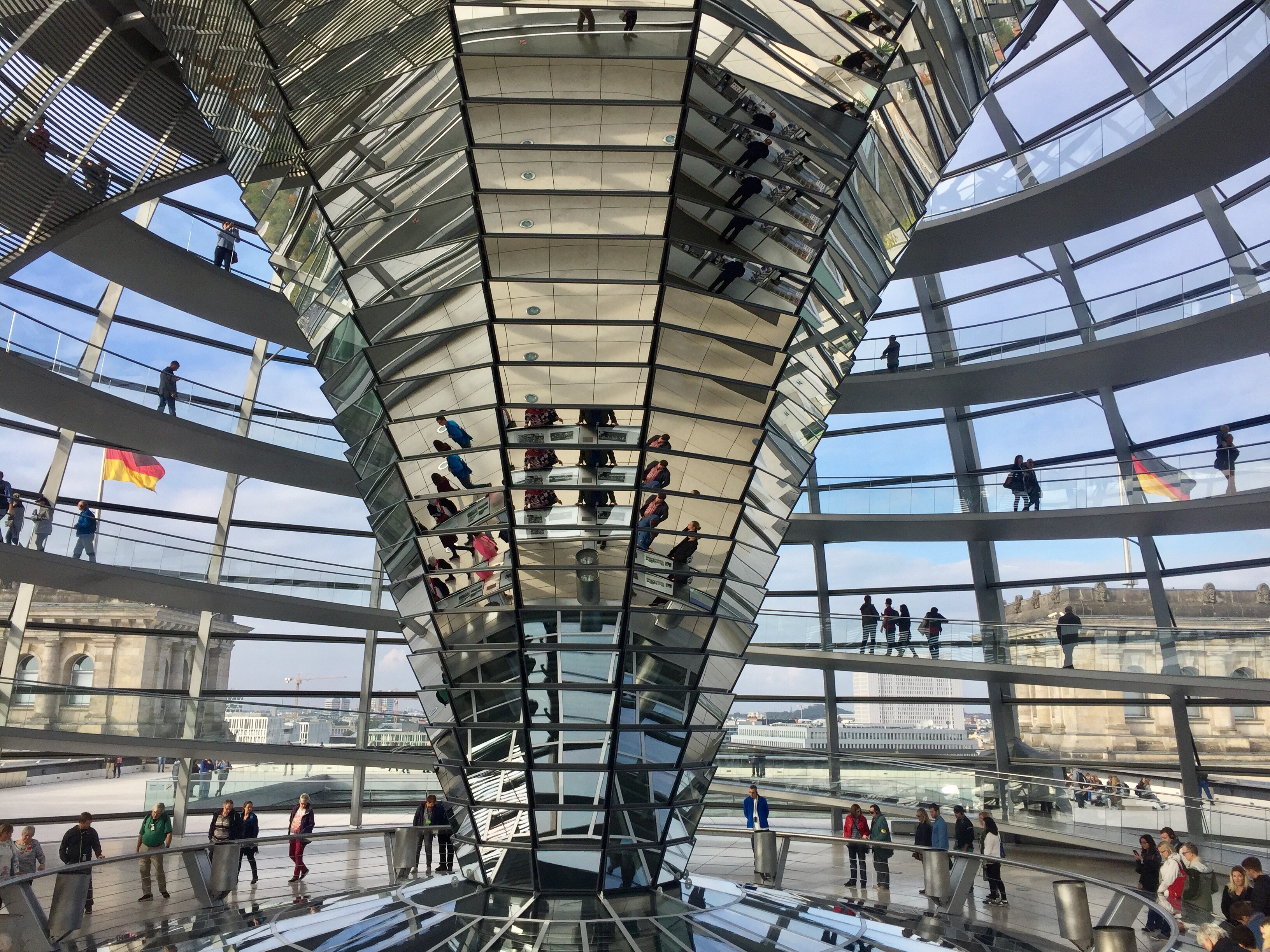 We made a visit to the Reichstag Building. It was rebuilt in the 1990’s following the reunification of Germany and the decision to move the capital from Bonn back to Berlin. The glass dome was added to symbolize that the people are above the government, as was not the case during National Socialism. From the glass dome, people can view the government at work. A symbol of transparency.