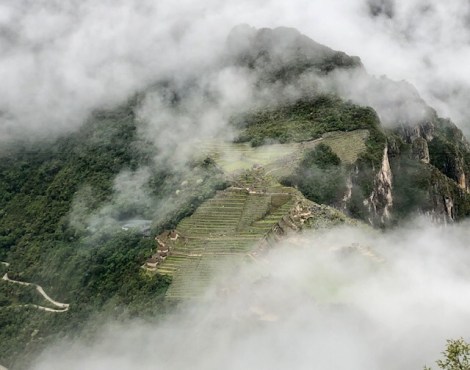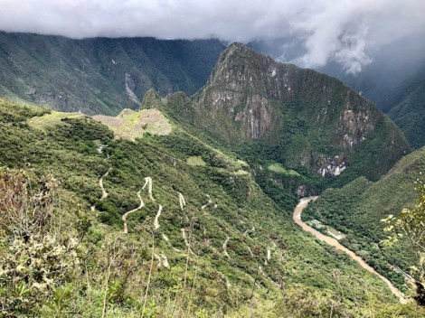 After two hours spent on the summit, we headed to Sun Gate. From there, we could see the switchback road that leads up from Aguas Calientes to MP.