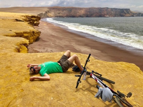 We spent the next day cycling through Paracas National Park. There are lots of bikes for rent in town for about $6/day, although the bikes are pretty rusty and beat up. After testing out a few, we found a couple that at least had working breaks and a few functioning gears. The shop gave us a map showing the common loop bicycles take, with the points of interest along the way.