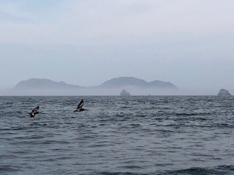 At the islands, we had the chance to see many sea lions, penguins, and countless birds. As we approached the islands, we were escorted by a pair of pelicans flying alongside our boat.