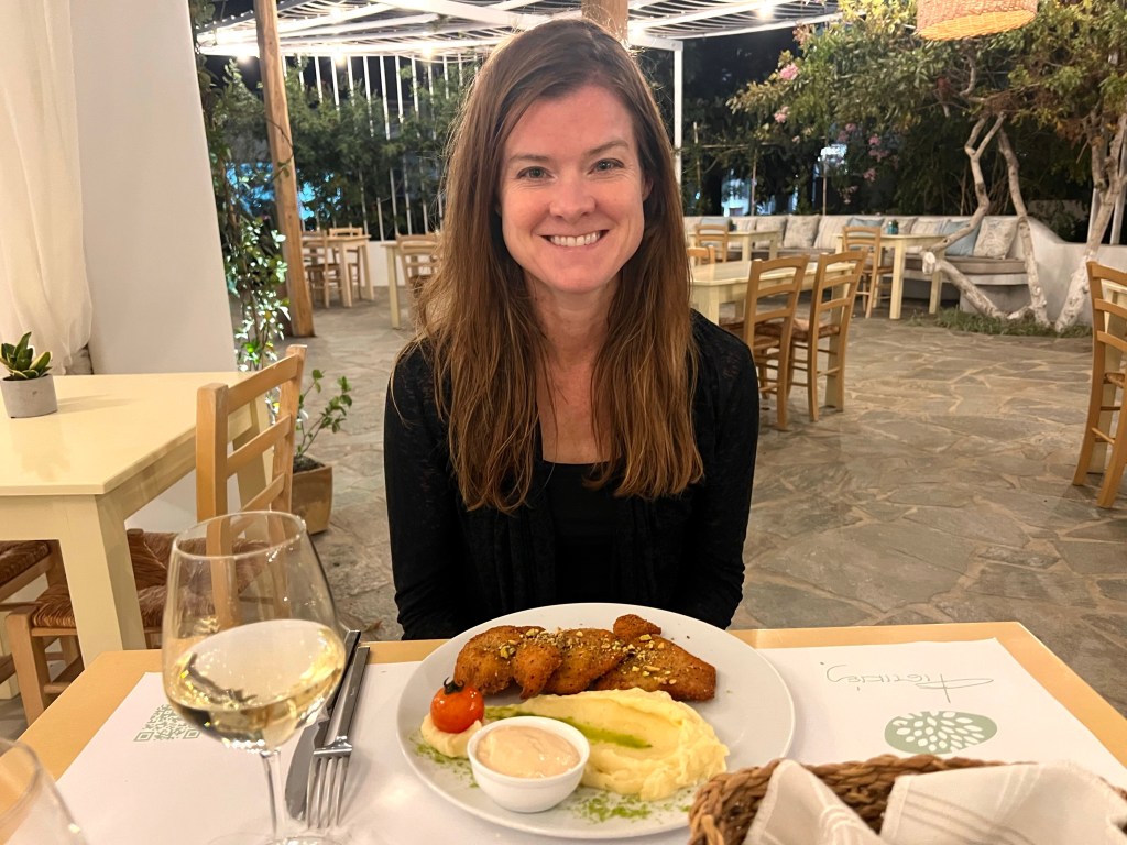 It’s a good thing we got plenty of exercise while in Greece as we did plenty of eating! We were overwhelmed by the number of restaurants to chose from on this island. No reservations needed, plenty of tables everywhere, and no need to rush through eating to free up your table for the next guests. The check won’t be brought to the table until you ask for it. Just linger, enjoy, and don’t feel rushed… it’s an adjustment coming from the states! And when you do ask for the check, it’s typically accompanied by complimentary fruit, dessert, or a shot of liquor.