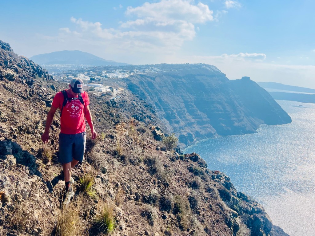 The next day, we walked from Fira to Oia, the quintessential Santorini hike. The path follows the caldera cliff and passes through the villages of Fira, Firostefani, Imerovigli, and Oia. It was a day filled with spectacular vistas.